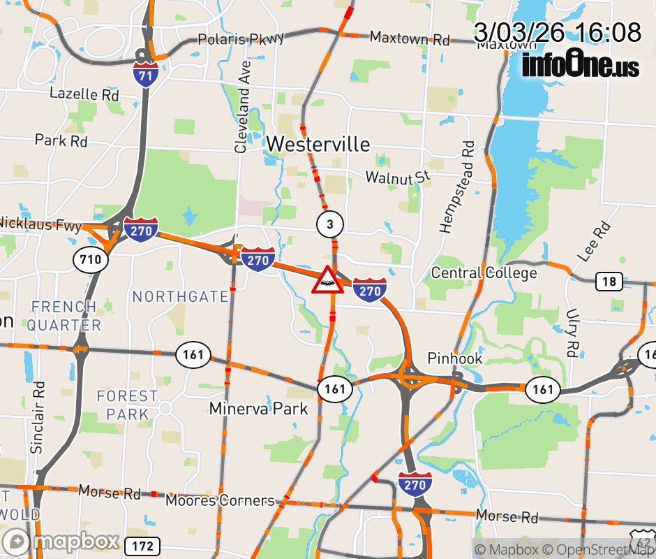 The right shoulder is blocked on I-270 East beyond SR-3/Westerville Pike, due to a crash. ![]() |