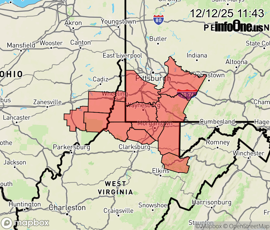 Canceled 12/12/25 1:49 PM Winter Storm Warning issued December 12 at 11:41AM EST until December 14 at 1:00PM EST by NWS Pittsburgh PA * WHAT... Heavy snow expected. Total snow accumulations between 5 and 8 inches. * WHERE... Portions of east central Ohio, southwest and western Pennsylvania, and northern and the northern panhandle of West Virginia. * WHEN... From 1 PM Saturday to 1 PM EST Sunday. * IMPACTS... Roads, and especially bridges and overpasses, will likely become slick and hazardous. Travel could be very difficult. * ADDITIONAL DETAILS... Localized higher amounts could occur in snow bands. ![]() |