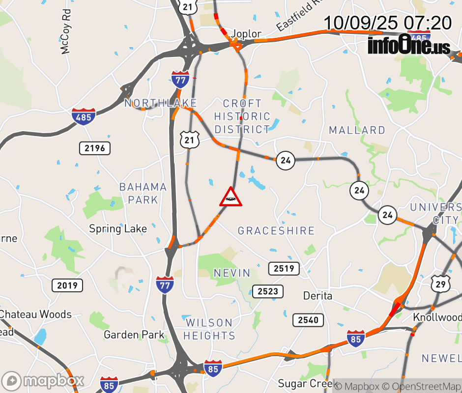 There is a incident in intersection of Old Statesville Rd & Pete Brown Rd causing delays in All directions. ![]() |