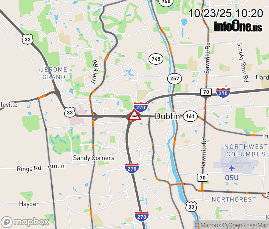 The right shoulder is blocked on I-270 West at US-33/SR-161 East, due to a crash. ![]() |
