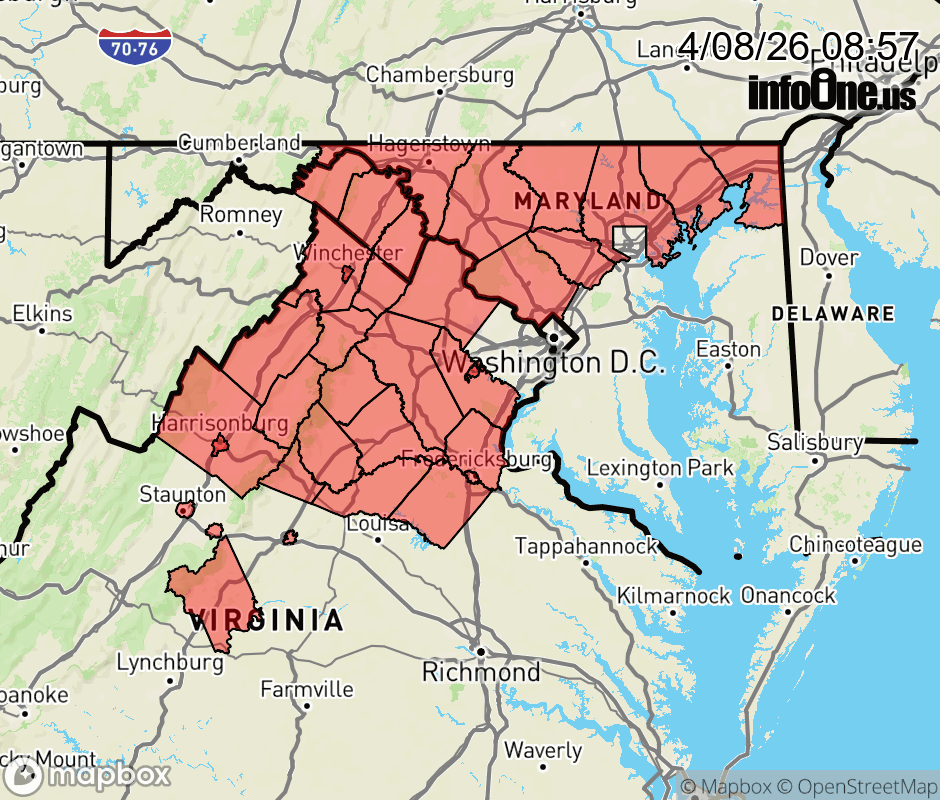 Canceled 4/8/26 9:00 AM Freeze Warning issued April 8 at 8:55AM EDT until April 8 at 9:00AM EDT by NWS Baltimore MD/Washington DC * WHAT... Sub-freezing temperatures as low as 29 possible. * WHERE... Portions of central and northern Maryland, central and northernVirginia, and the eastern panhandle of West Virginia. * WHEN... From late tonight through Thursday morning. * IMPACTS... Frost and freeze conditions could kill crops, other sensitive vegetation and possibly damage unprotected outdoor plumbing. ![]() |
