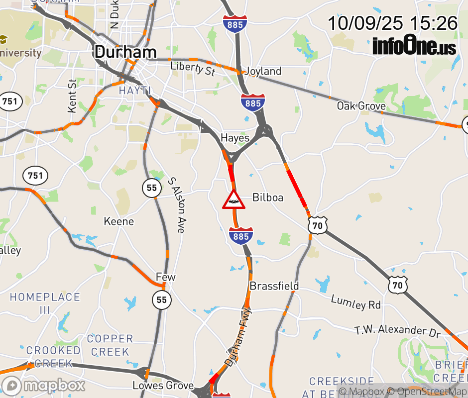 Canceled 10/9/25 5:46 PM Location: I-885S at MM 9, NC Vehicle Crash.
