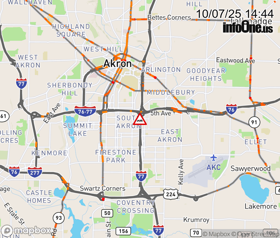 The center lane is blocked on I-77 South at Ramp I-76 West to I-77 South, due to a disabled vehicle.