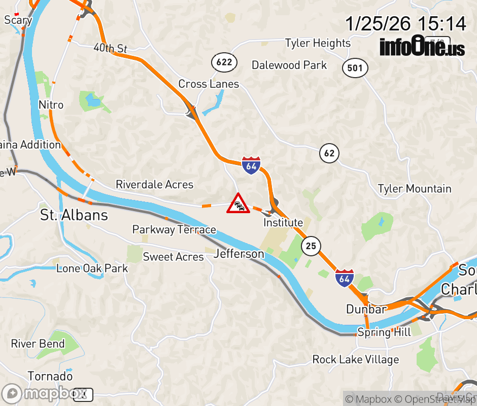 Road Closure on New Goff Mountain Rd at WV-25 (1st Ave S) in Institute. Updated: Sun 1/25/26 3:14 PM EST ![]() Updated: Sun 1/25/26 3:14 PM EST |