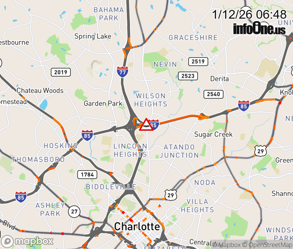 The right ramp lane is closed at Exit 38 (I-77). ![]() |