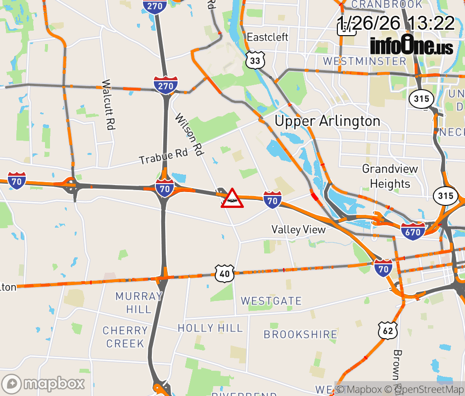 Expect lane closures on Ramp from N Wilson Rd to I-70 E, due to a crash. ![]() |