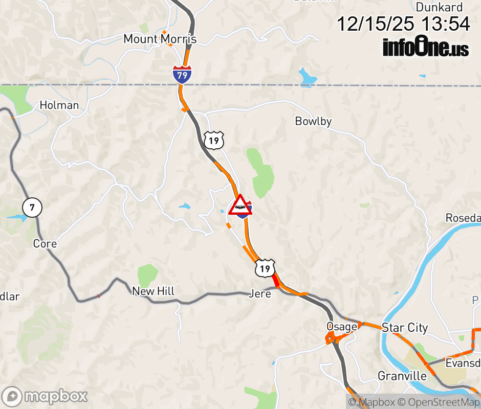 Canceled 12/15/25 3:30 PM Location: I-79 at MM 158.0, WV Accident.