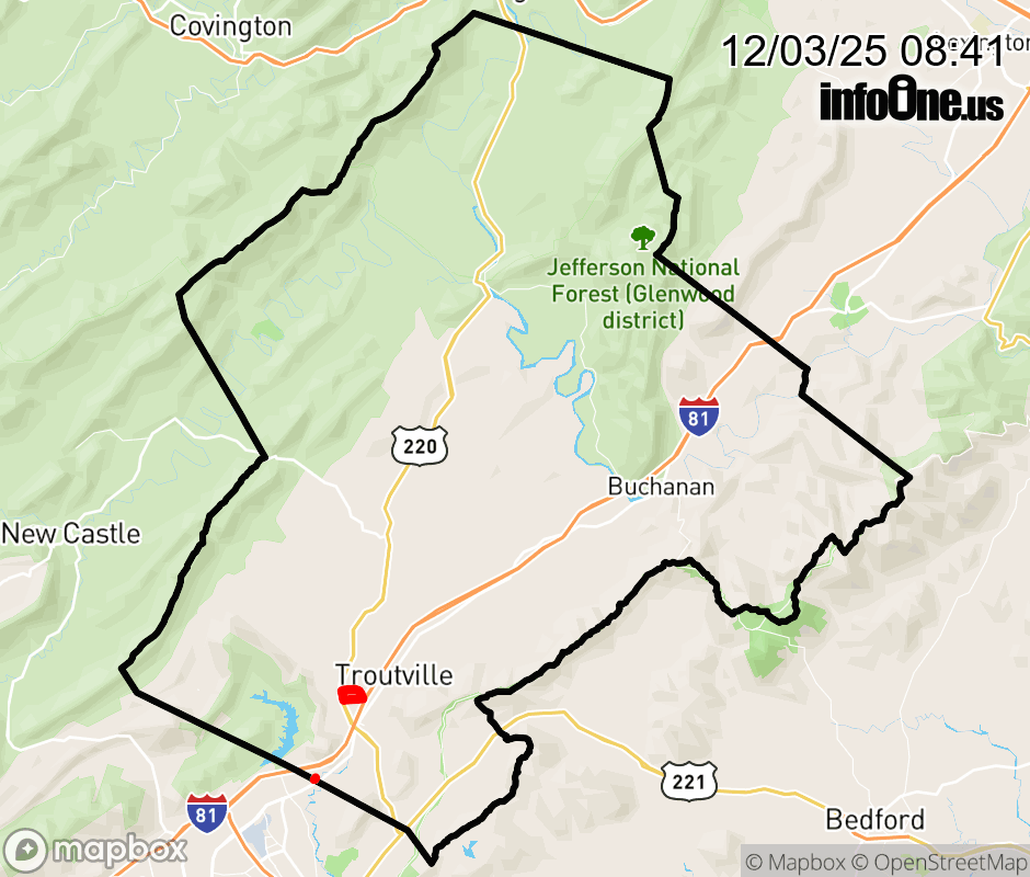 Canceled 12/3/25 9:41 AM Botetourt County has 2 power outages affecting 81 customers. Appalachian Power 81 without power Troutville: Customers affected: 39 (1%) Estimated repair: Wed 11:00 AM Daleville: Customers affected: 36 (1%) Estimated repair: Wed 11:00 AM Roanoke: Customers affected: 6 (< 1%) Estimated repair: Wed 1:00 PM Updated: Wed 12/3/25 8:41 AM EST ![]() Updated: Wed 12/3/25 8:41 AM EST |