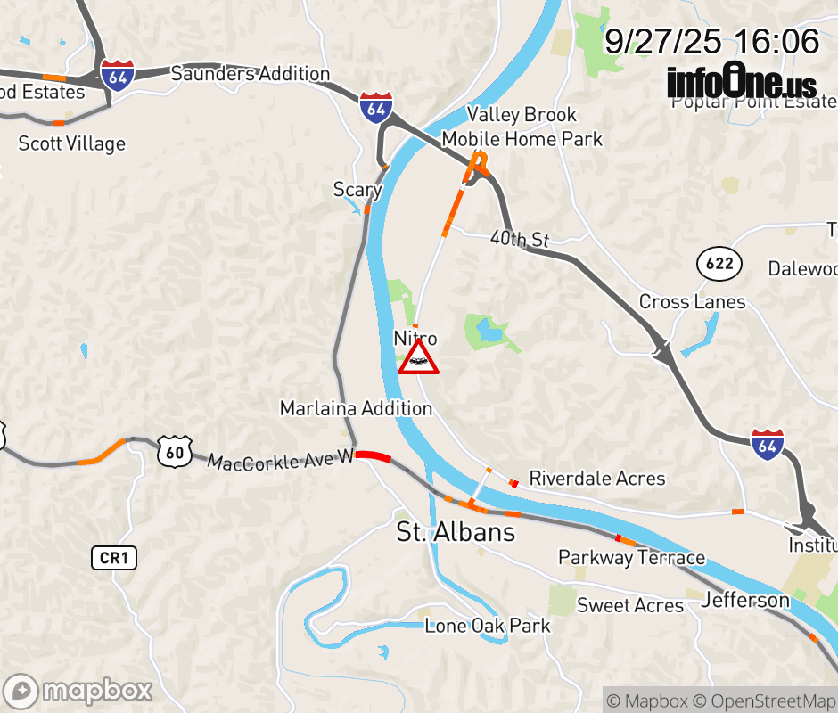In Kanawha County there is a Vehicle Crash on WV-25 at Mile Marker 0.92. 100 blk 1st Ave.