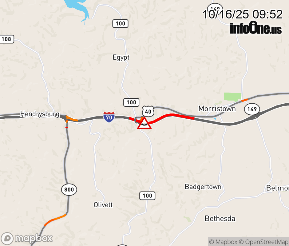 Expect lane closures on I-70 West at I-70/US-40, due to a crash. ![]() |