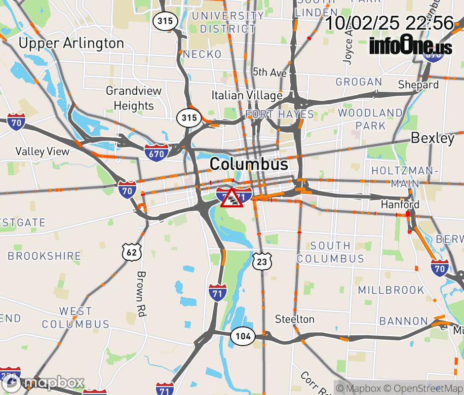 The left lane is blocked on I-70 East/I-71 North at US-23 South/Front St/High St, due to repairs/maintenance. ![]() |