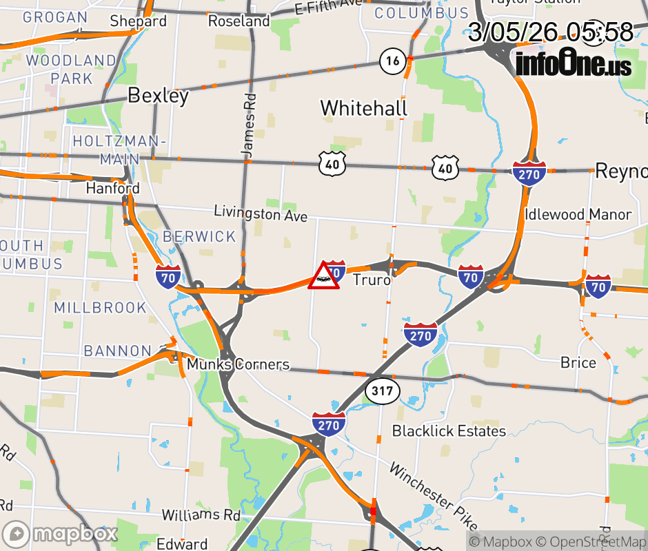 The left lane is blocked on I-70 West beyond SR-317/Hamilton Rd, due to a crash. ![]() |