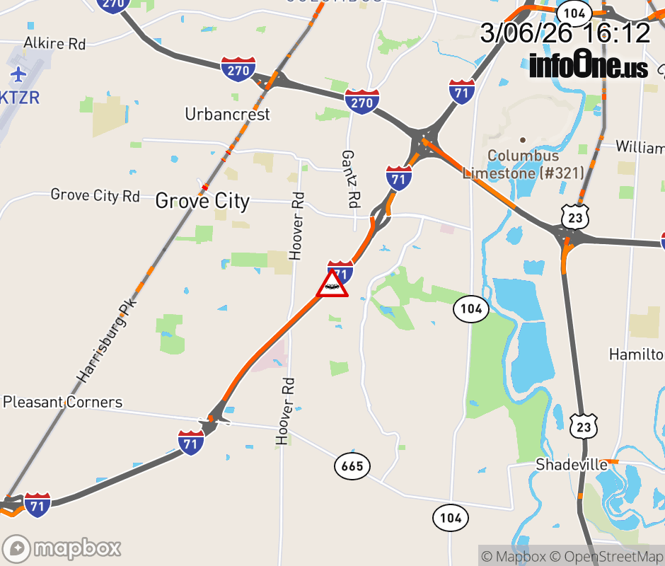 Expect lane closures on I-71 South beyond Stringtown Rd, due to a crash. ![]() |