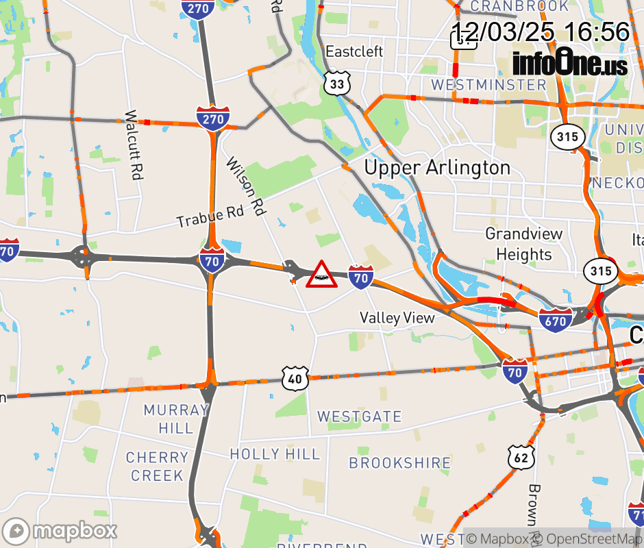 The left shoulder is blocked on I-70 East beyond Wilson Rd, due to a crash. Updated: Wed 12/3/25 4:56 PM EST ![]() Updated: Wed 12/3/25 4:56 PM EST |