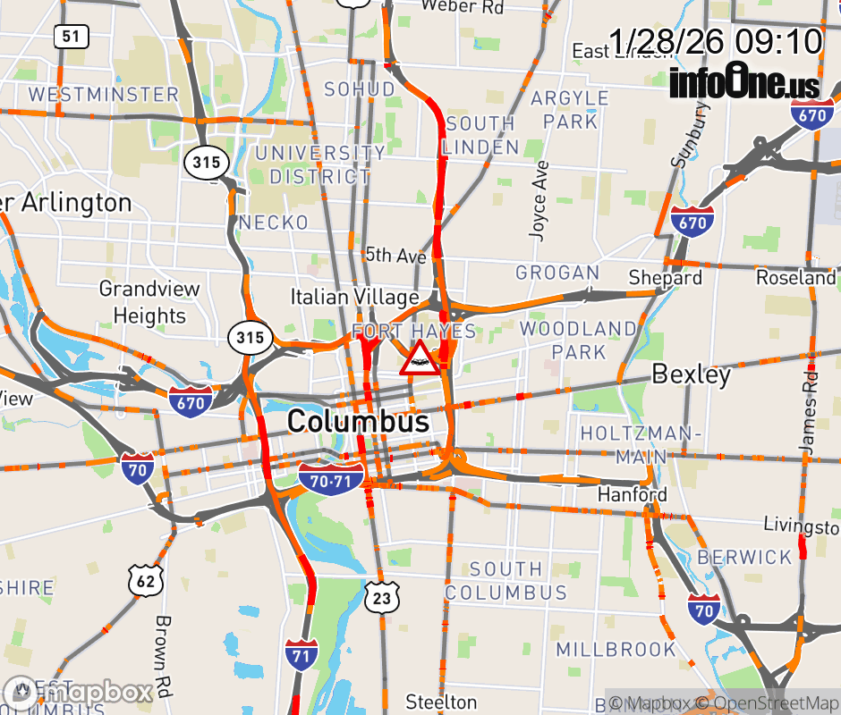 The left lane is blocked on I-670 East beyond I-71 South, due to a crash. ![]() |