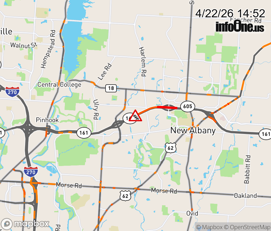 The right lane is blocked on SR-161 West beyond New Albany Rd, due to repairs/maintenance. ![]() |