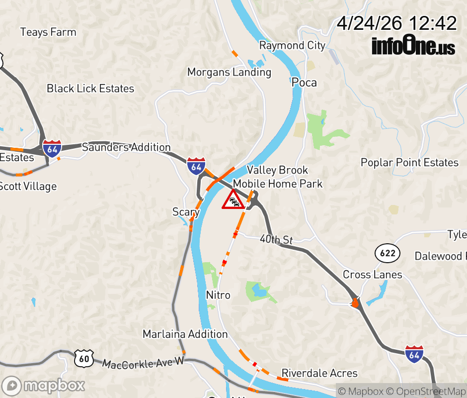 Road Closure on WV-25 Independent Ave & McJunkin Rd. The southbound road is closed. The northbound road is closed. ![]() |