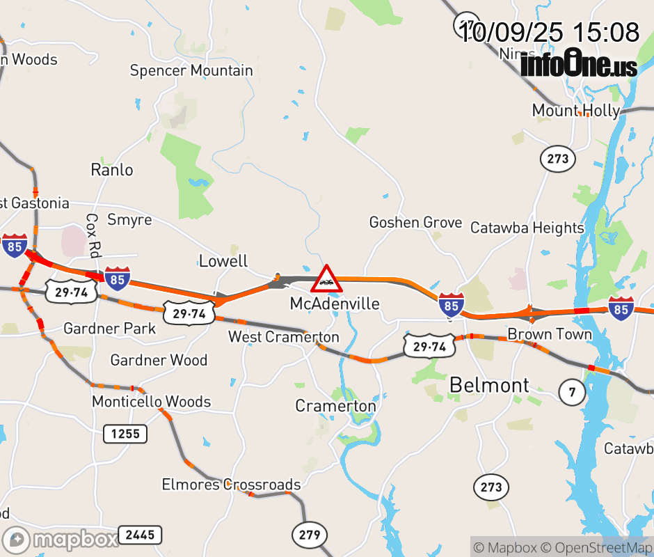 The left lane is closed prior to Exit 24 (McAdenville Road). ![]() |