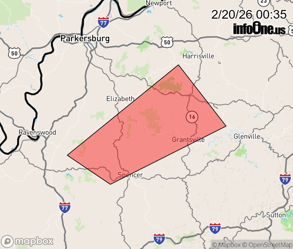 Canceled 2/20/26 1:00 AM Severe Thunderstorm Warning issued February 20 at 12:34AM EST until February 20 at 1:00AM EST by NWS Charleston WV SVRRLX The National Weather Service in Charleston West Virginia has issued a * Severe Thunderstorm Warning for... Northern Calhoun County in north central West Virginia... Southwestern Ritchie County in northwestern West Virginia... West central Gilmer County in north central West Virginia... Southeastern Wirt County in northwestern West Virginia... Northwestern Roane County in central West Virginia... East central Jackson County in northwestern West Virginia... * Until 100 AM EST. * At 1234 AM EST, a severe thunderstorm was located 7 miles northwest of Spencer, moving northeast at 50 mph. HAZARD...Quarter size hail. SOURCE...Radar indicated. IMPACT...Damage to vehicles is expected. * Locations impacted include... Spencer, Grantsville, Reedy, Cherry, Smithville, Lucille, Creston, Big Springs, Brohard, Macfarlan, Tanner, Annamoriah, Leroy, and Munday. ![]() |