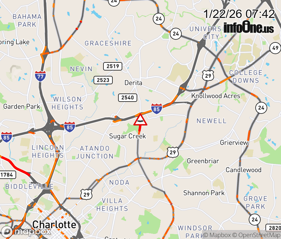 The left lane is closed at I-85 . Updated: Thu 1/22/26 7:42 AM EST ![]() Updated: Thu 1/22/26 7:42 AM EST |
