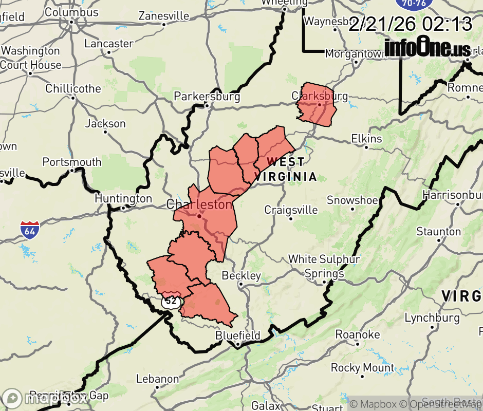 Canceled 2/21/26 10:06 AM Winter Storm Watch issued February 21 at 2:12AM EST until February 24 at 1:00AM EST by NWS Charleston WV * WHAT... Heavy snow possible. Total snow accumulations between 4 and 5 inches possible. * WHERE... Portions of central, northern, and southern West Virginia. * WHEN... From late tonight through late Monday night. * IMPACTS... Plan on slippery road conditions. The hazardous conditions could impact the Monday morning and evening commutes. ![]() |