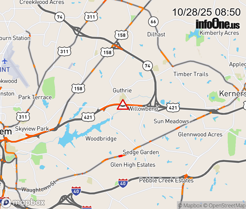 The right lane is closed past Exit 227(Winston Salem Northern Beltway). ![]() |