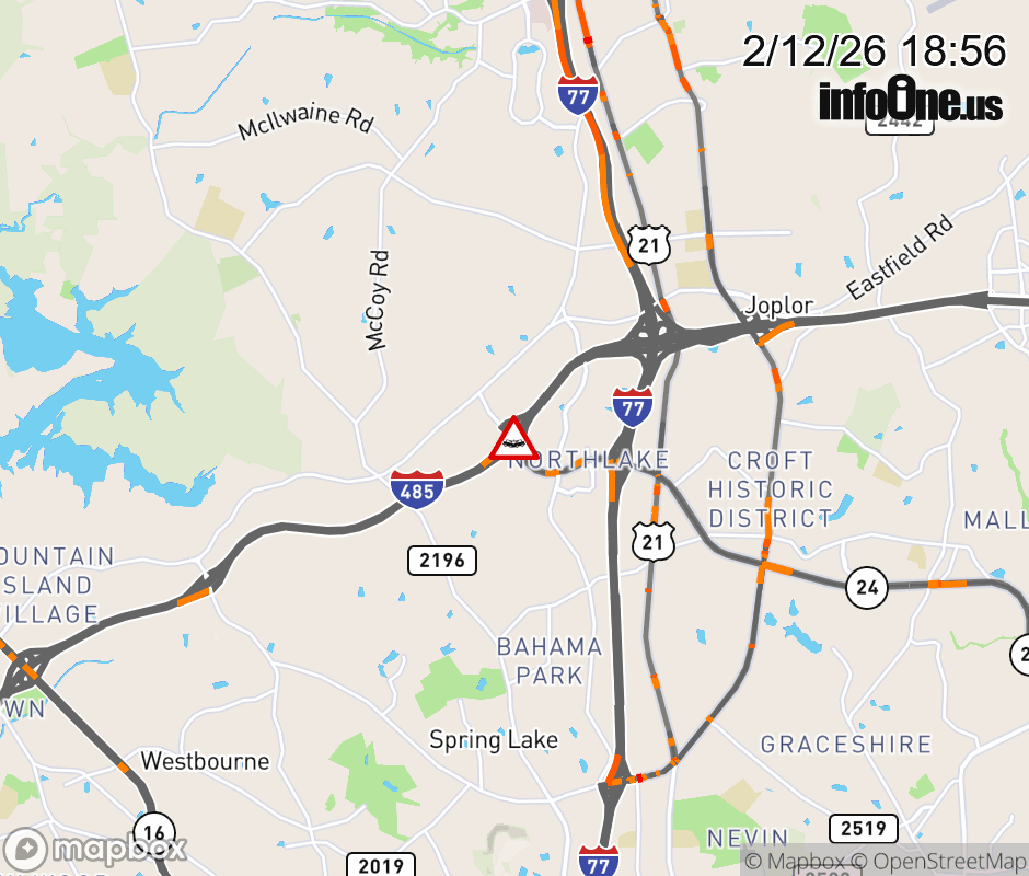 The left shoulder is closed past Exit 21 (W.T. Harris Blvd) Updated: Thu 2/12/26 6:56 PM EST ![]() Updated: Thu 2/12/26 6:56 PM EST |