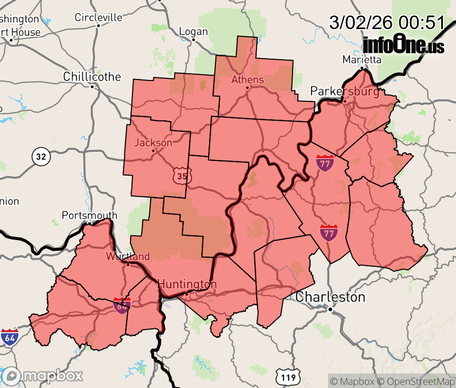 Canceled 3/2/26 8:44 AM Winter Weather Advisory issued March 2 at 12:49AM EST until March 2 at 12:00PM EST by NWS Charleston WV * WHAT... Mixed precipitation expected. Total snow and sleet accumulations up to one to two inches and ice accumulations of a light glaze to a few hundredths of an inch. * WHERE... Portions of northeast Kentucky, southeast Ohio, and central, northern, southern, and western West Virginia. * WHEN... From 4 AM early this morning to noon EST today. * IMPACTS... Plan on slippery road conditions. The hazardous conditions could impact the morning commute. ![]() |