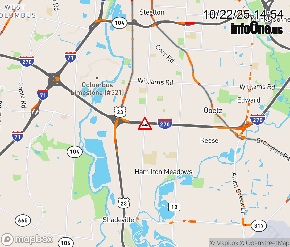 The left lane is blocked on I-270 East beyond US-23/S High St North, due to a disabled vehicle. ![]() |