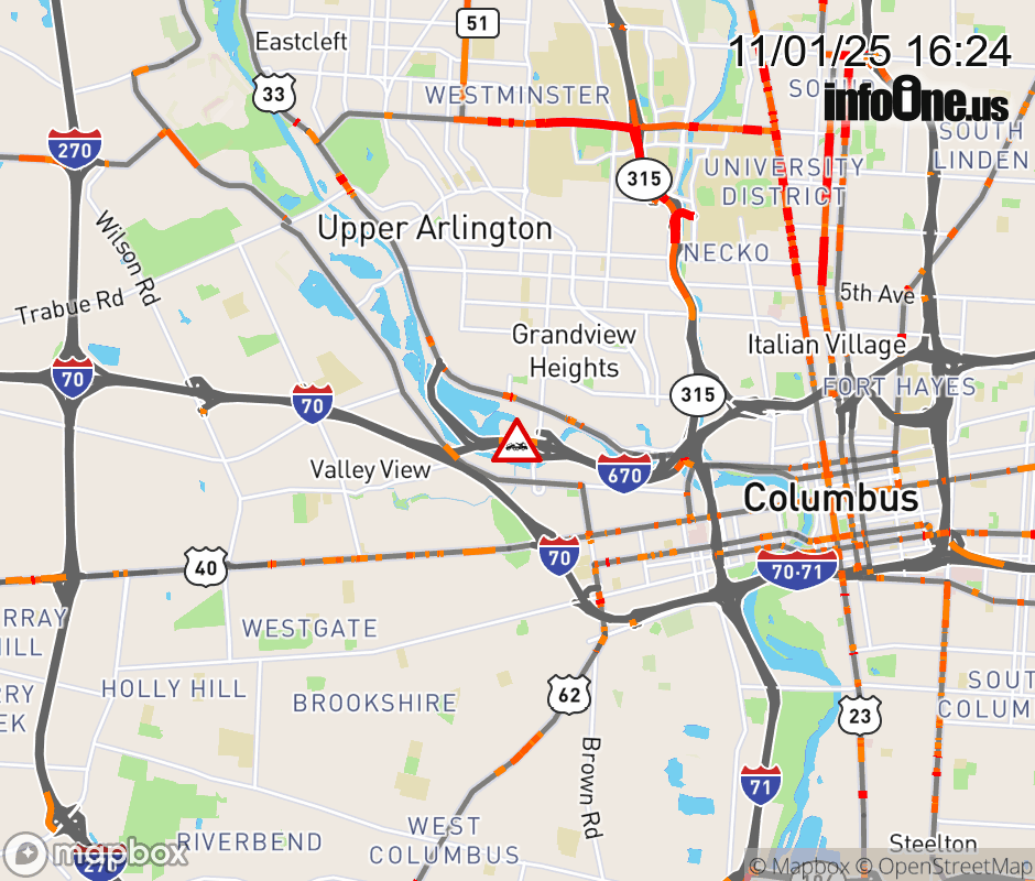 The center lane is blocked on I-670 West at US-33, due to a disabled vehicle. ![]() |