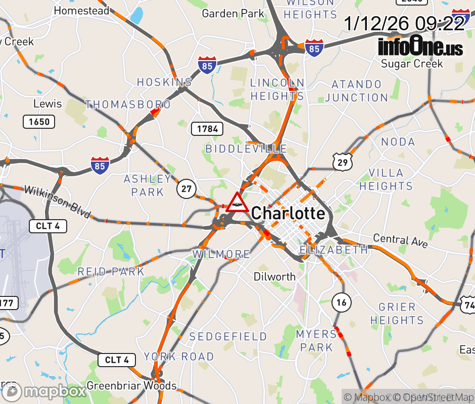 The two right lanes are closed at Exit 10 (Morehead St.). Updated: Mon 1/12/26 9:22 AM EST ![]() Updated: Mon 1/12/26 9:22 AM EST |