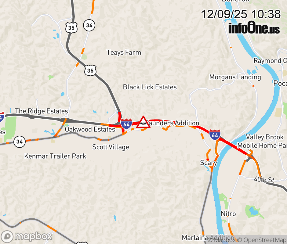 Canceled 12/9/25 1:46 PM Location: I-64 at MM 41.0, WV Accident.