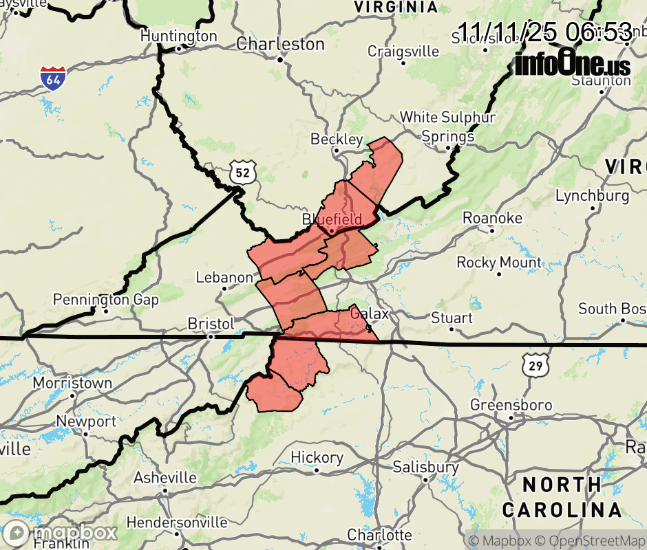 Canceled 11/11/25 7:00 AM Winter Weather Advisory issued November 11 at 6:50AM EST until November 11 at 7:00AM EST by NWS Blacksburg VA Other than some lingering flurries, the chance for accumulating snow has decreased. It will remain blustery through the morning in addition to single digit wind chills. Prepare accordingly. ![]() |