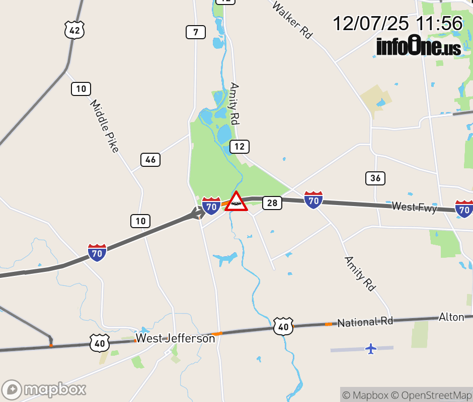The right shoulder is blocked on I-70 East beyond SR-142/Plain City, due to a crash. ![]() |