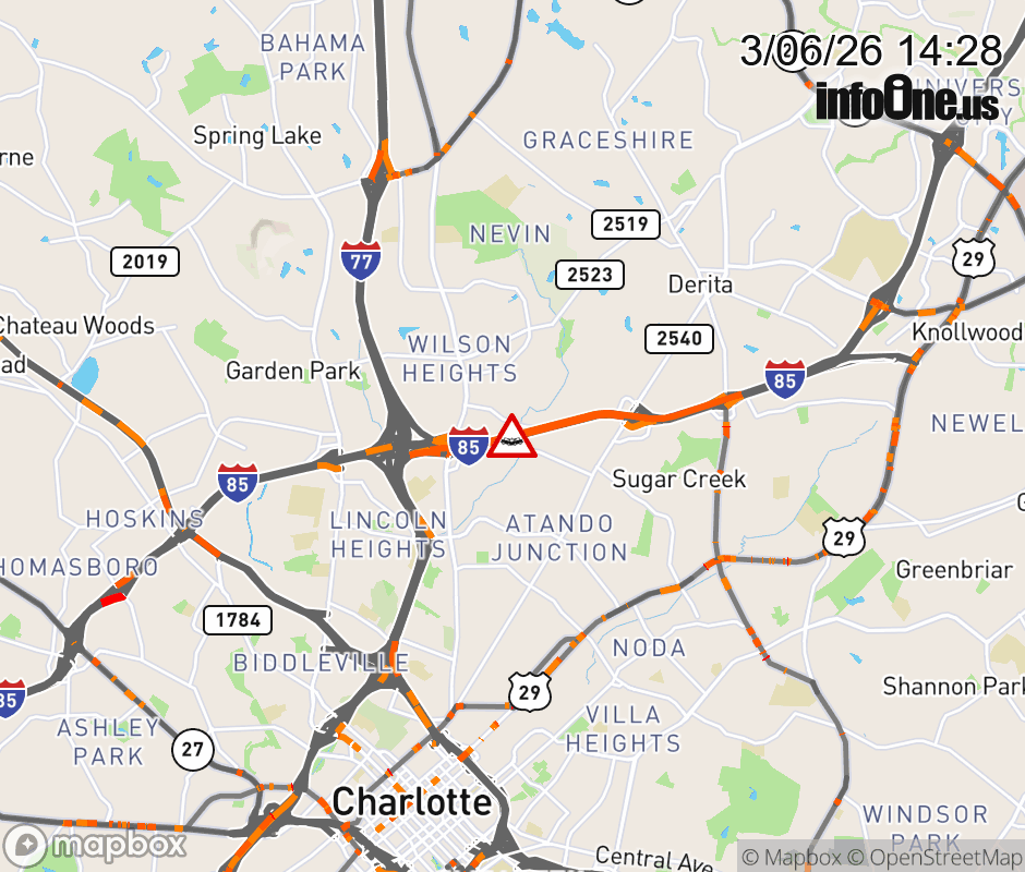 The right shoulder is closed at Exit 39 (Statesville Ave.). Updated: Fri 3/6/26 2:28 PM EST ![]() Updated: Fri 3/6/26 2:28 PM EST |