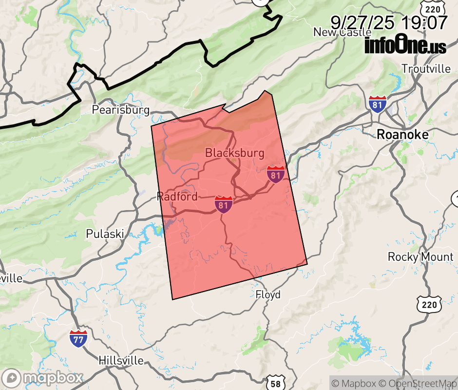 Canceled 9/27/25 7:30 PM Special Weather Statement issued September 27 at 7:04PM EDT by NWS Blacksburg VA At 704 PM EDT, Doppler radar was tracking a cluster of strong thunderstorms near Copper Valley, or near Pilot, moving northeast at 10 mph. HAZARD...Pea size hail and wind gusts up to 30 mph. SOURCE...Radar indicated. IMPACT...Loose items may be knocked over due to wind gusts. Locations impacted include... Blacksburg... Christiansburg... Radford... Newport... Pilot... Indian Valley... and Shawsville. ![]() |