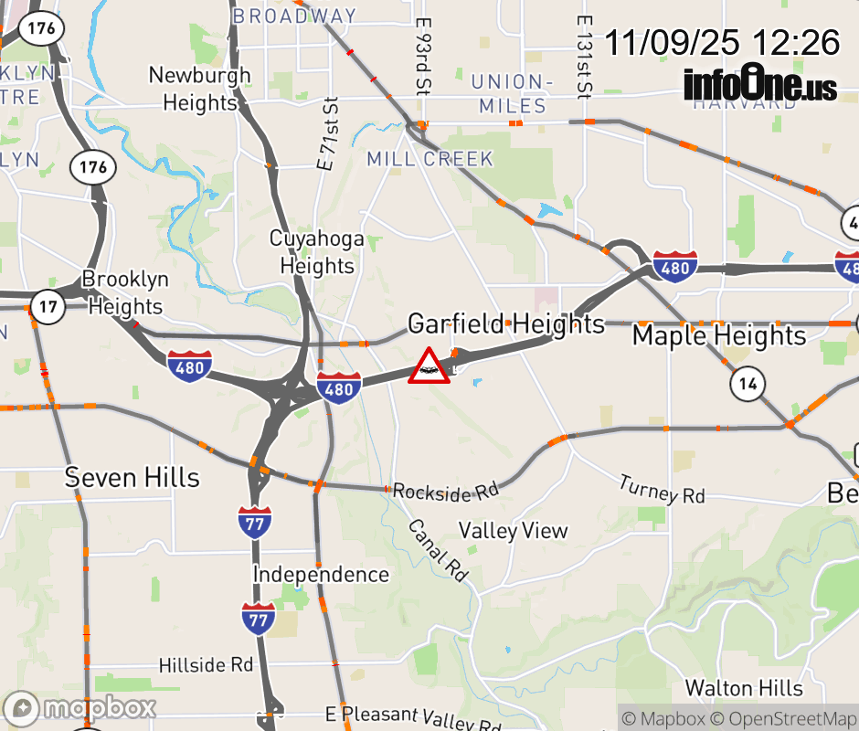 The 3 left lanes are blocked on I-480 West beyond Transportation Blvd/E 98th St, due to a crash. ![]() |