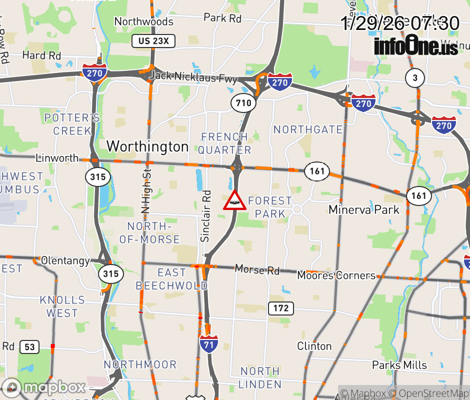 The right lane is blocked on I-71 South beyond SR-161/Dublin Granville Rd, due to a crash. Updated: Thu 1/29/26 7:30 AM EST ![]() Updated: Thu 1/29/26 7:30 AM EST |