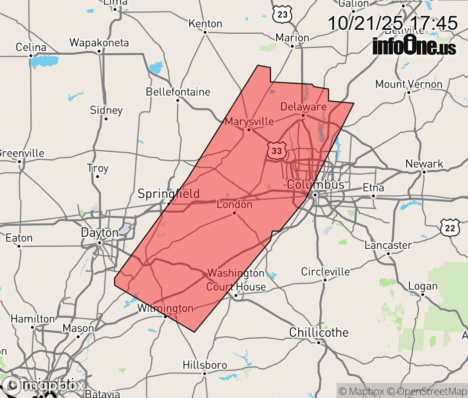 Canceled 10/21/25 6:15 PM Special Weather Statement issued October 21 at 5:43PM EDT by NWS Wilmington OH At 543 PM EDT, strong thunderstorms were located along a line extending from Richwood to near Mechanicsburg to near Bellbrook, moving east at 30 mph. HAZARD...Wind gusts up to 45 mph. SOURCE...Radar indicated. IMPACT...Gusty winds could knock down tree limbs and blow around unsecured objects. Locations impacted include... Columbus, Springfield, Dublin, Westerville, Grove City, Delaware, Upper Arlington, Hilliard, Xenia, Marysville, Worthington, Wilmington, London, Bellbrook, Yellow Springs, Jefferson, Powell, Sunbury, Plain City, and West Jefferson. This includes the following Interstates... I-70 in Ohio between mile markers 54 and 97. I-71 in Ohio between mile markers 47 and 87, and between mile markers 114 and 138. If outdoors, consider seeking shelter inside a sturdy building. To report hazardous weather conditions, go to our website at weather.gov/iln and submit your report via social media, when you can do so safely. ![]() |