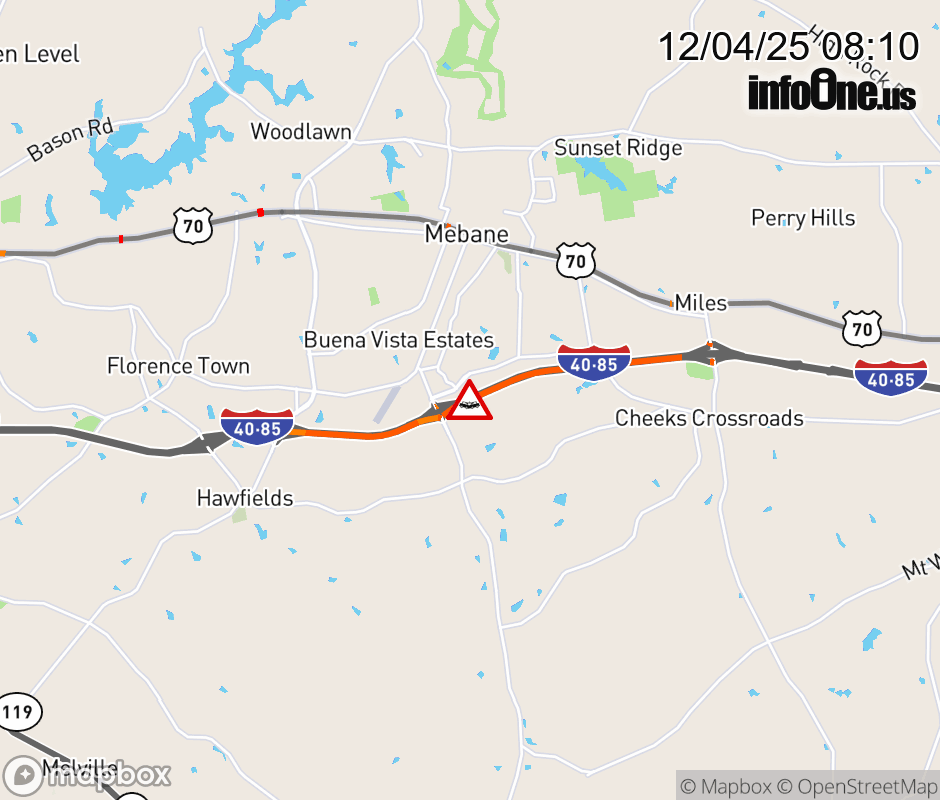 The right lane is closed past Exit 154 (Mebane Oaks Road) ![]() |