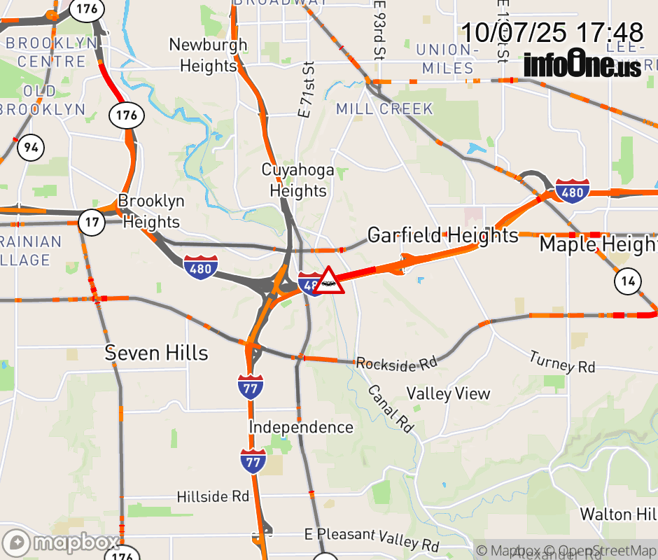 The left lane is blocked on I-480 West beyond Transportation Blvd/E 98th St, due to a crash. Updated: Tue 10/7/25 5:48 PM EDT ![]() Updated: Tue 10/7/25 5:48 PM EDT |