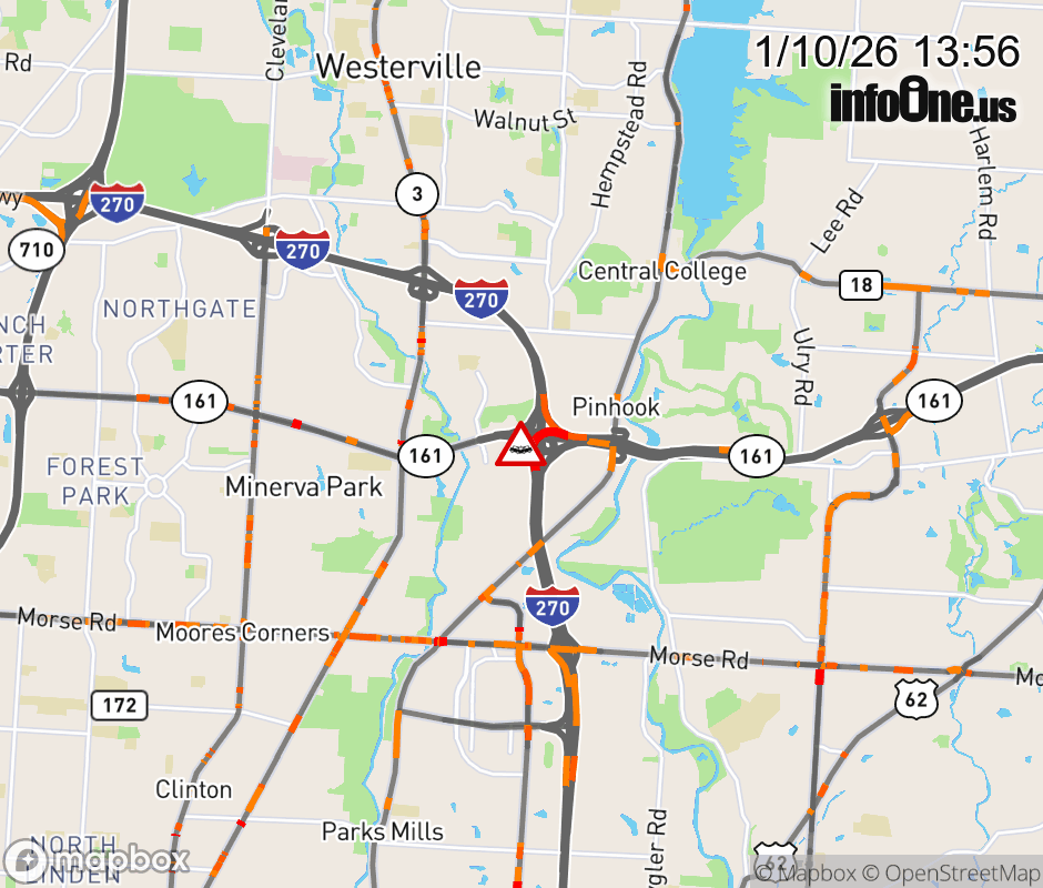 The left lane is closed on Ramp SR-161 East to I-270 South, due to a crash. Updated: Sat 1/10/26 1:56 PM EST ![]() Updated: Sat 1/10/26 1:56 PM EST |