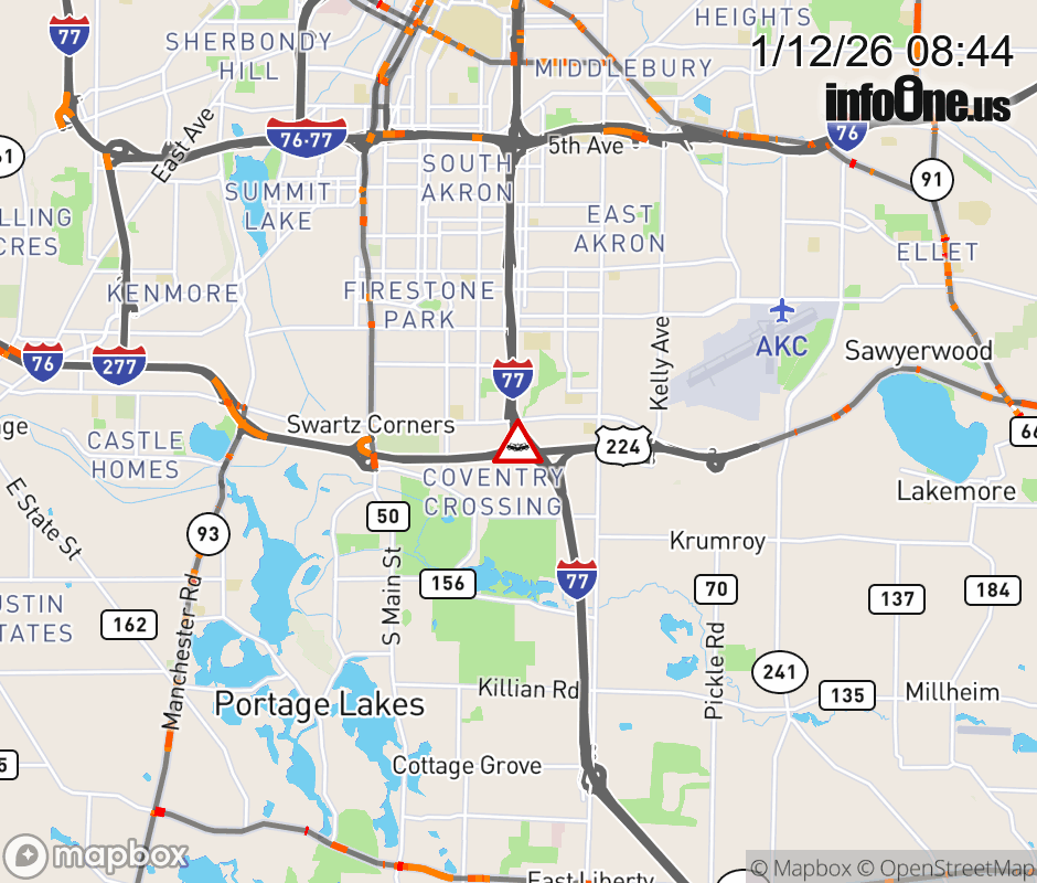 The left shoulder is blocked on Ramp US-224 West to I-77 South, due to a crash. ![]() |