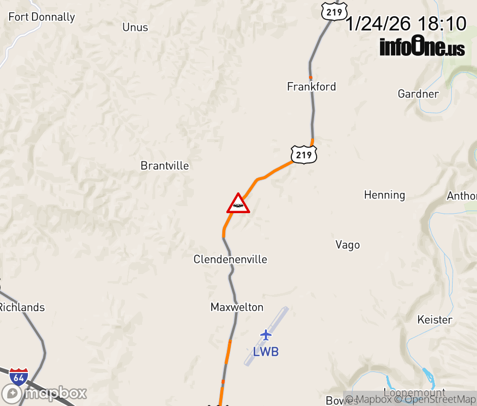 Canceled 1/24/26 7:28 PM Location: US-219 at MM 18.45, WV Accident.