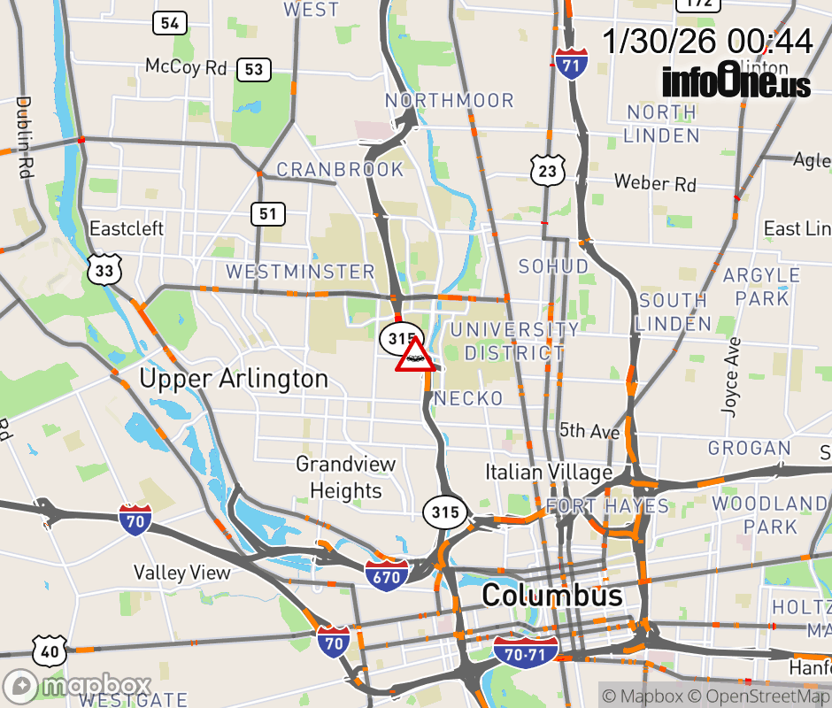 The 2 right lanes are blocked on SR-315 South at Kinnear Rd/Olentangy Rd, due to a crash. ![]() |