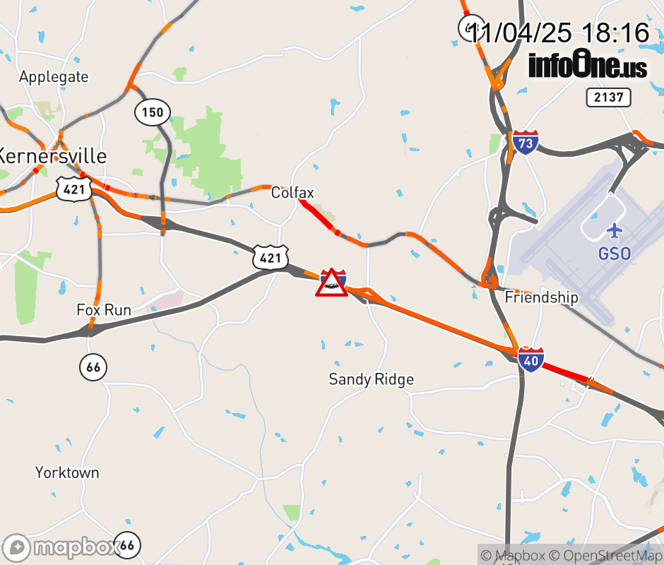 The right lane is closed past Exit 208 (Sandy Ridge Rd). ![]() |