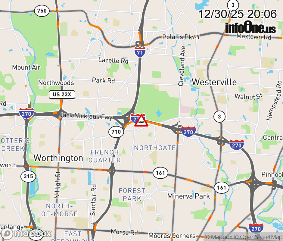 The left lane is blocked on I-270 East beyond I-71, due to a crash. Updated: Tue 12/30/25 8:06 PM EST ![]() Updated: Tue 12/30/25 8:06 PM EST |