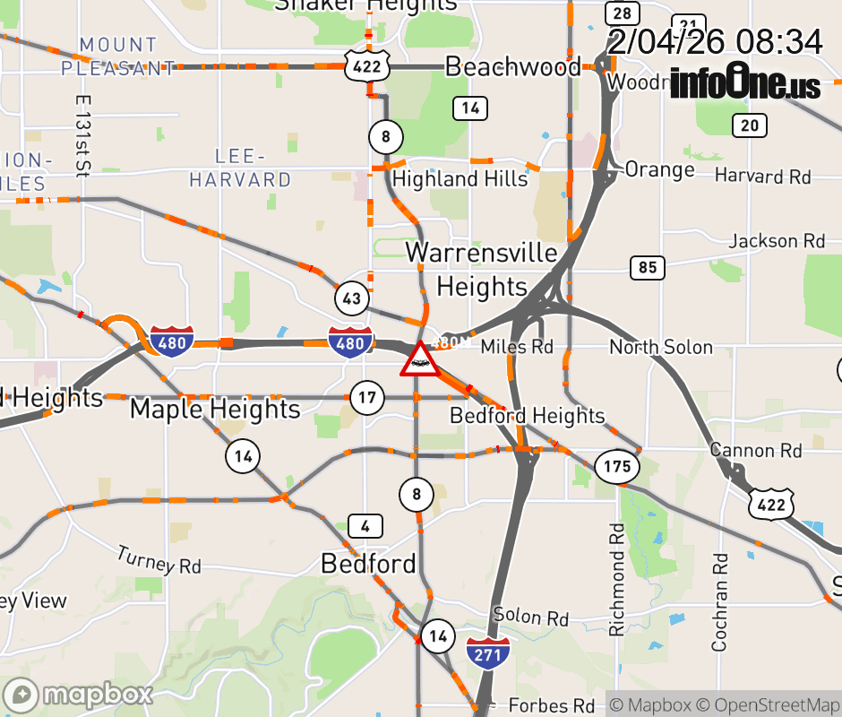 The left lane is blocked on I-480 West beyond SR-8 /Northfield Rd, due to a crash. ![]() |