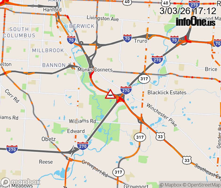 The left lane is blocked on US-33 East at I-270 South, due to a crash. ![]() |