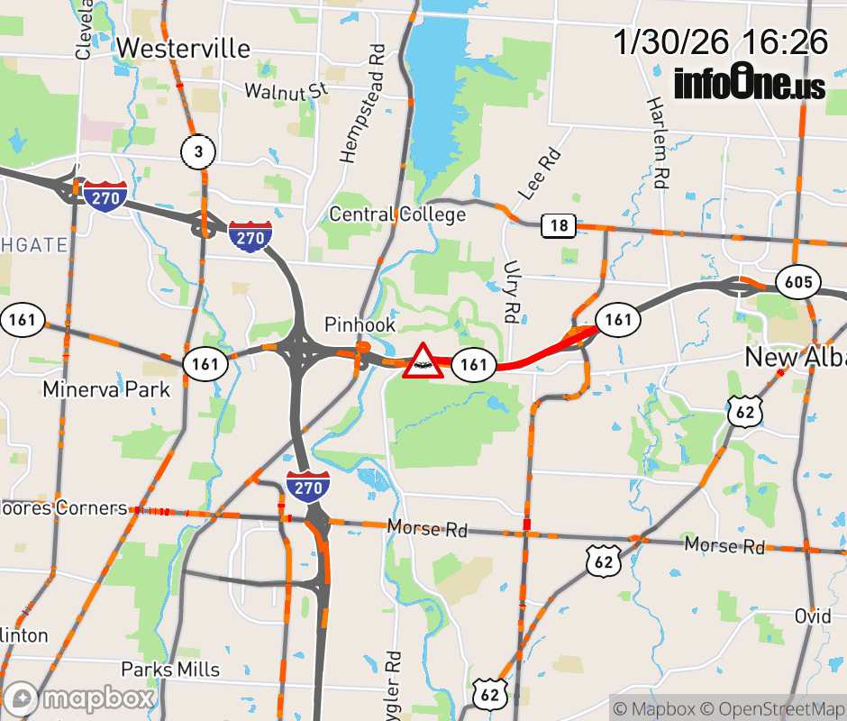 The right shoulder is blocked on SR-161 West at I-270, due to a crash. Updated: Fri 1/30/26 4:26 PM EST ![]() Updated: Fri 1/30/26 4:26 PM EST |